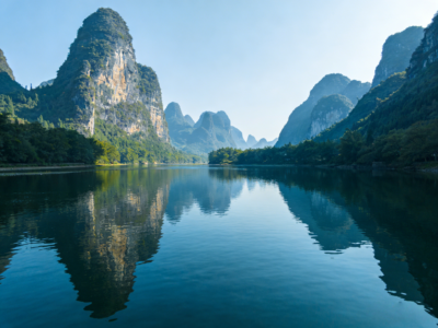 A UNESCO World Heritage Site, the Wulong Karst is a geological marvel featuring towering limestone pillars, deep sinkholes, and underground rivers. The Three Natural Bridges are the highlight here: three massive natural stone bridges standing majestically in a valley, formed by millions of years of water erosion. The area gained global fame after serving as a filming location for the movie Transformers: Age of Extinction, drawing fans from all over the world. Guilin’s landscape