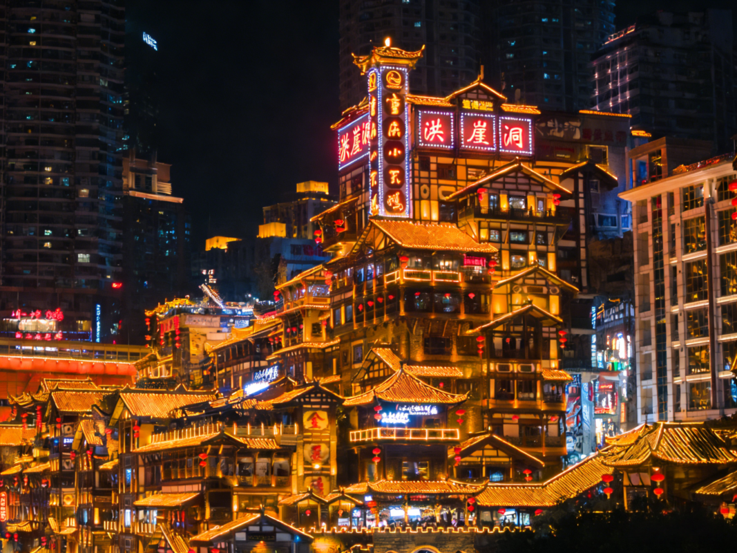 Hongyadong is the epitome of Chongqing’s "city built on mountains" feature. This complex of stilt houses follows the mountain’s contour, rising 11 stories high. Inspired by the traditional architecture of the Ba and Yu cultures, it houses restaurants, bars, and souvenir shops. The real magic happens at night: when the lights turn on, the entire building glows like a fairy-tale castle, with its reflection shimmering in the Jialing River below. It’s one of the most popular spots for capturing Chongqing’s dreamy skyline.